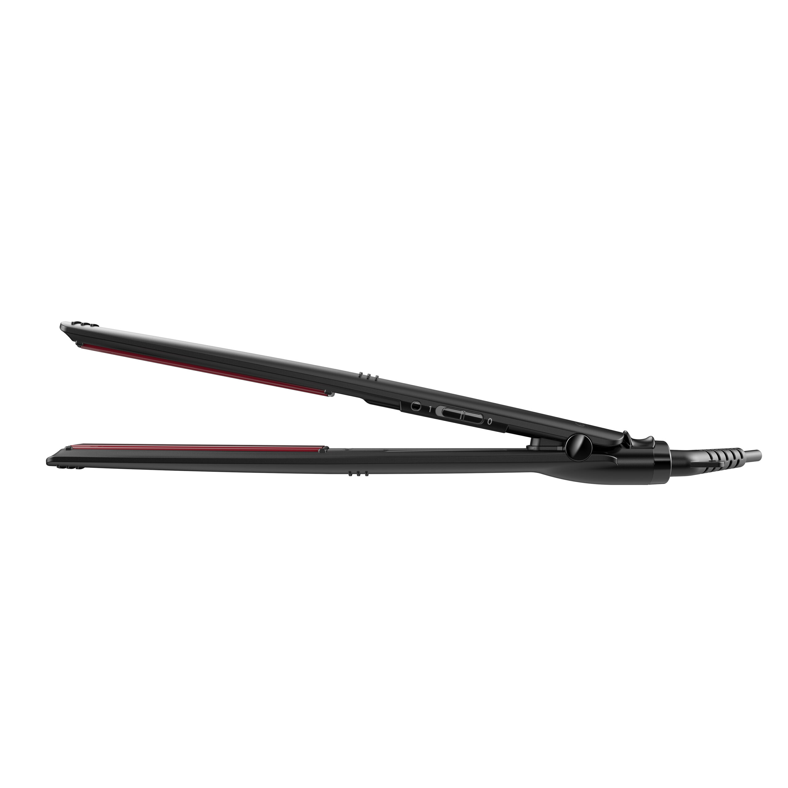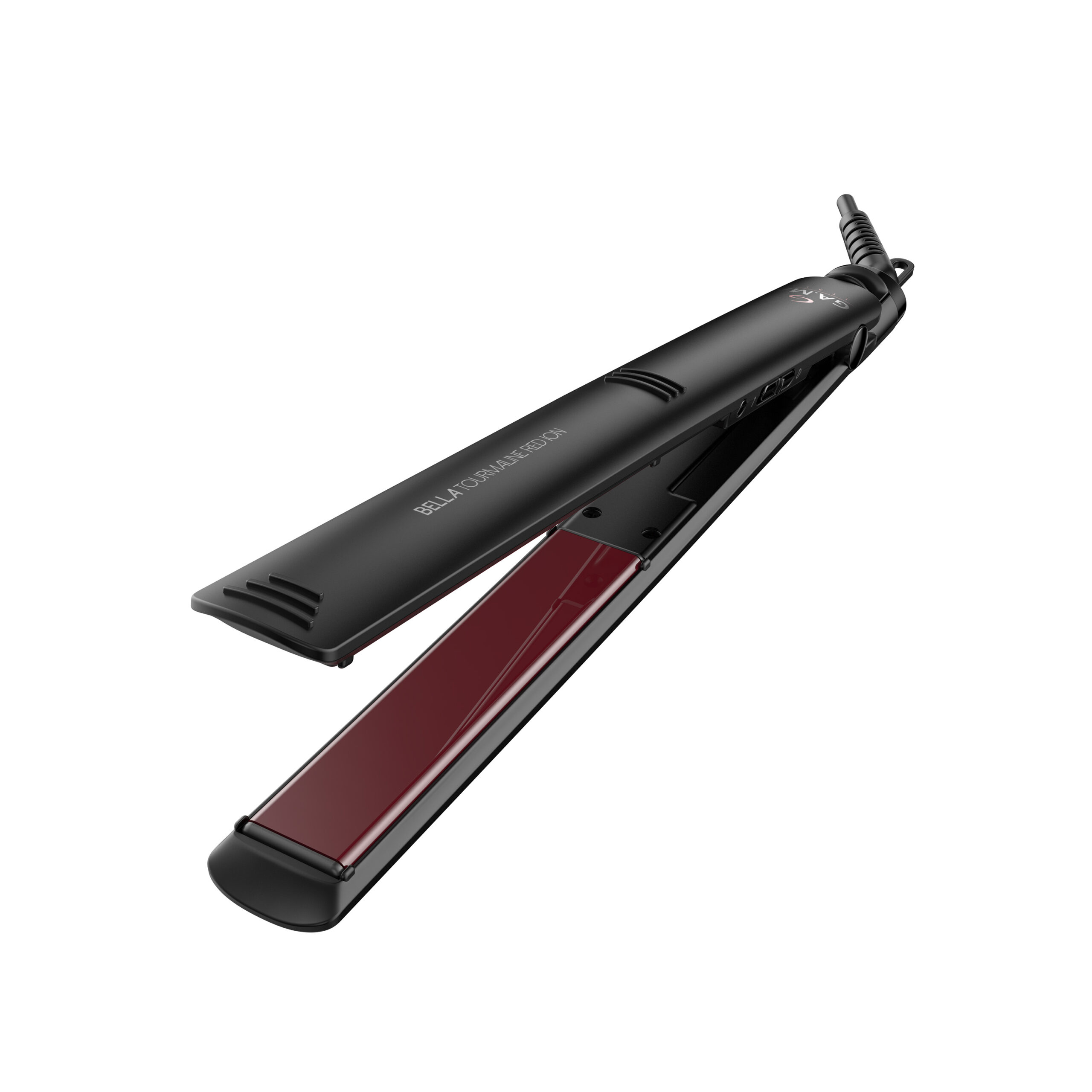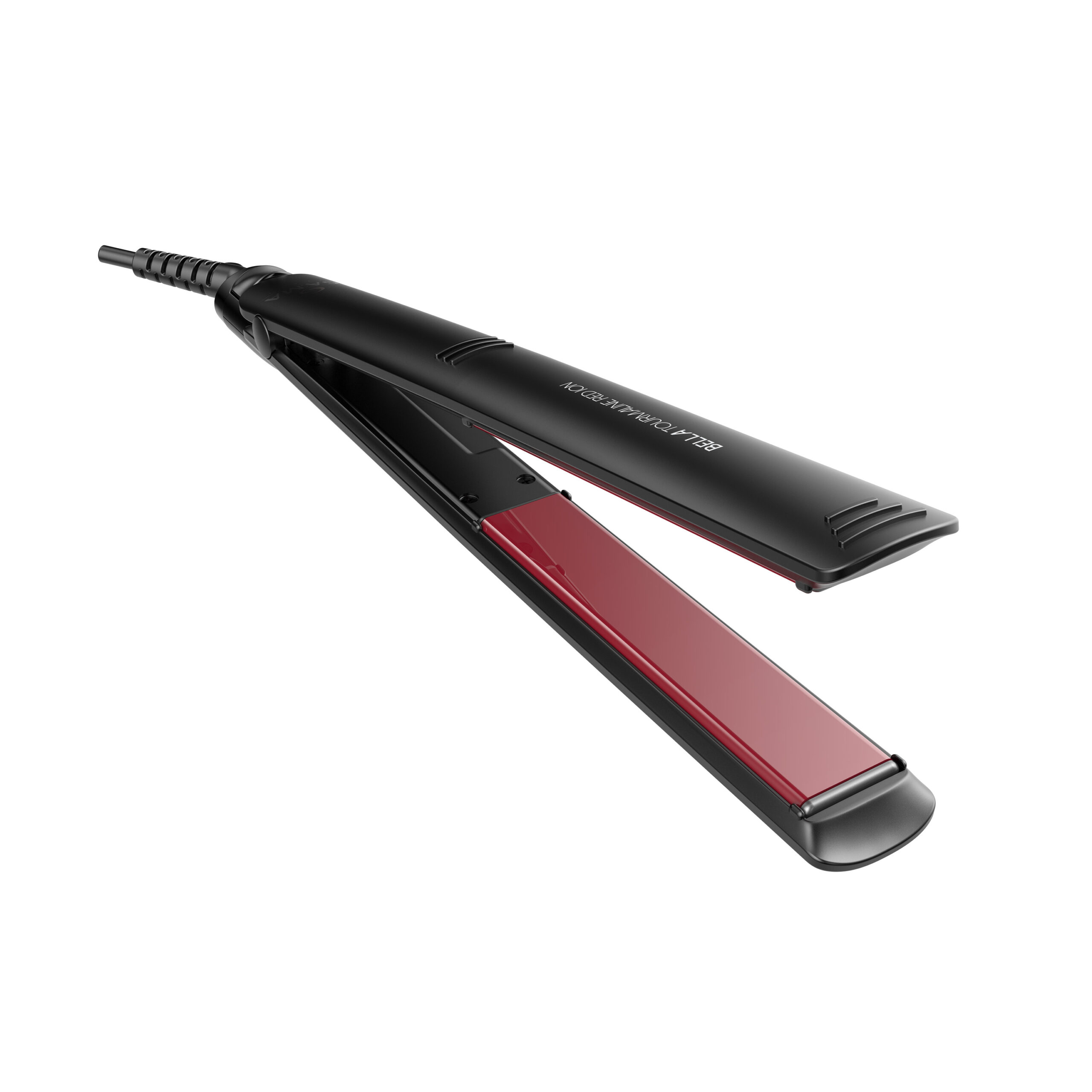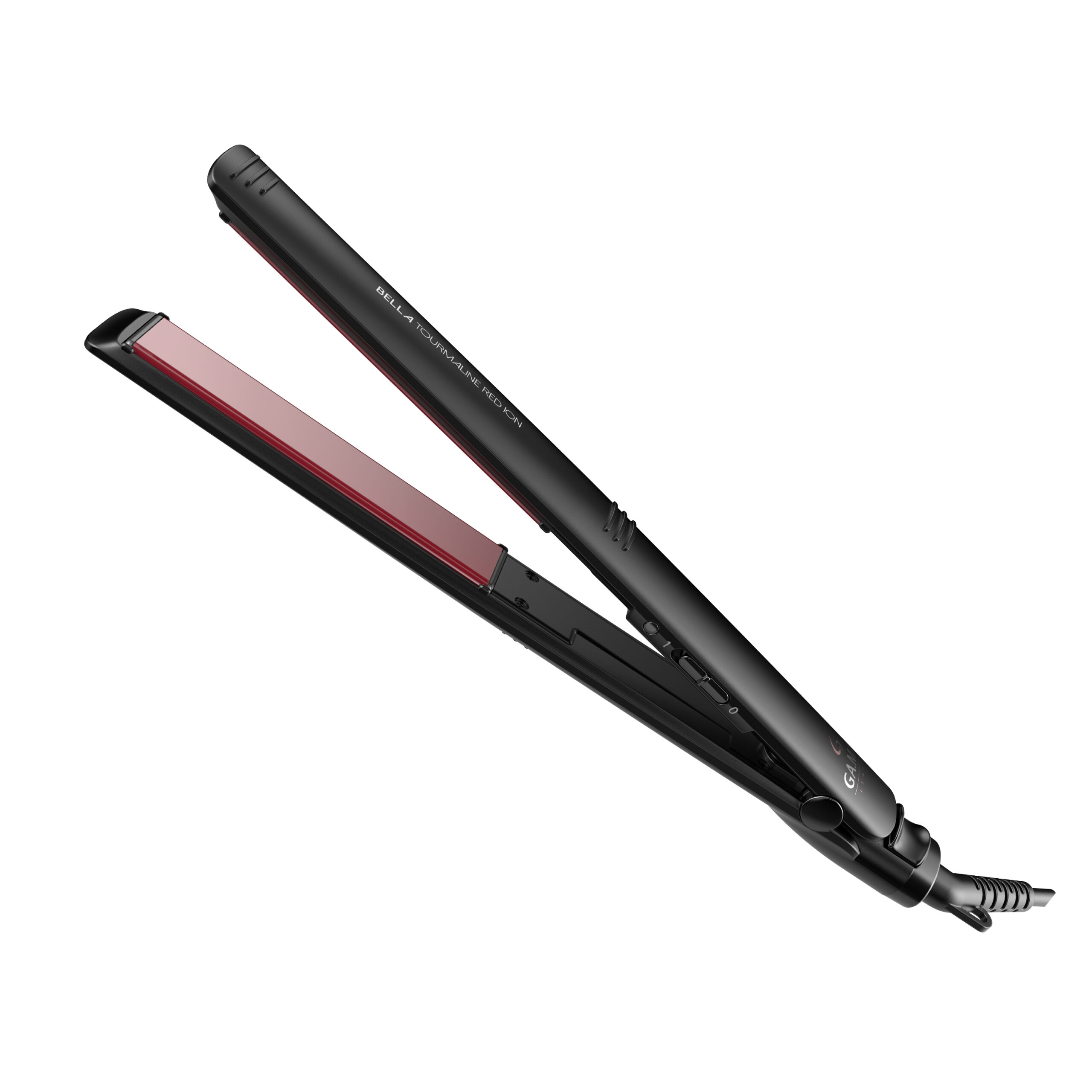 Plancha bella con diseño ultraplano, es extremadamente ligera y manejable, con tecnologÃa de turmalina emisora de iones negativos que genera calor infrarrojo distante (el más amigable para el cabello). Ideal para cabelleras extra largas, brillo, suavidad, cabello más sano y menos frizz. Cuenta con placas de calentamiento oscilantes largas de 120 x 25 mm con un sistema de suspensión especial que es ideal para alisar hebras de cabello voluminosas, ya que se adapta perfectamente a la forma del cabello.