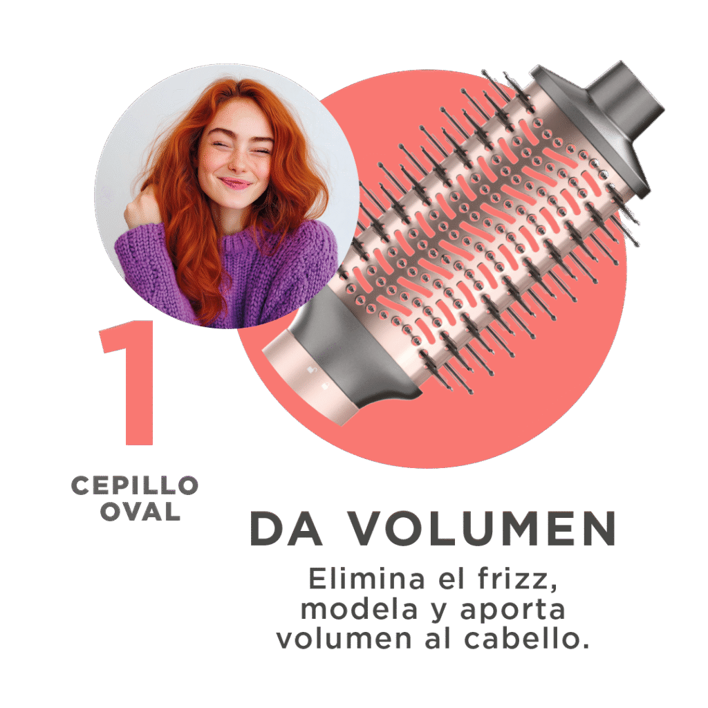 Cepillo oval → elimina frizz, aporta volumen y modela.