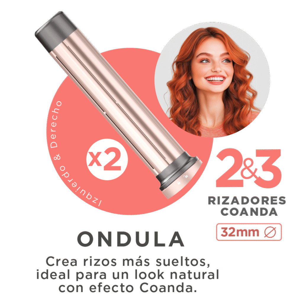Rizadores Coanda 32 mm (izquierdo y derecho) → rizos más sueltos y naturales.