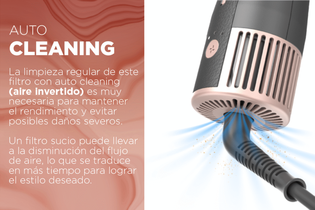 Sistema Auto Cleaning: limpieza con aire invertido que mantiene el filtro libre de obstrucciones.