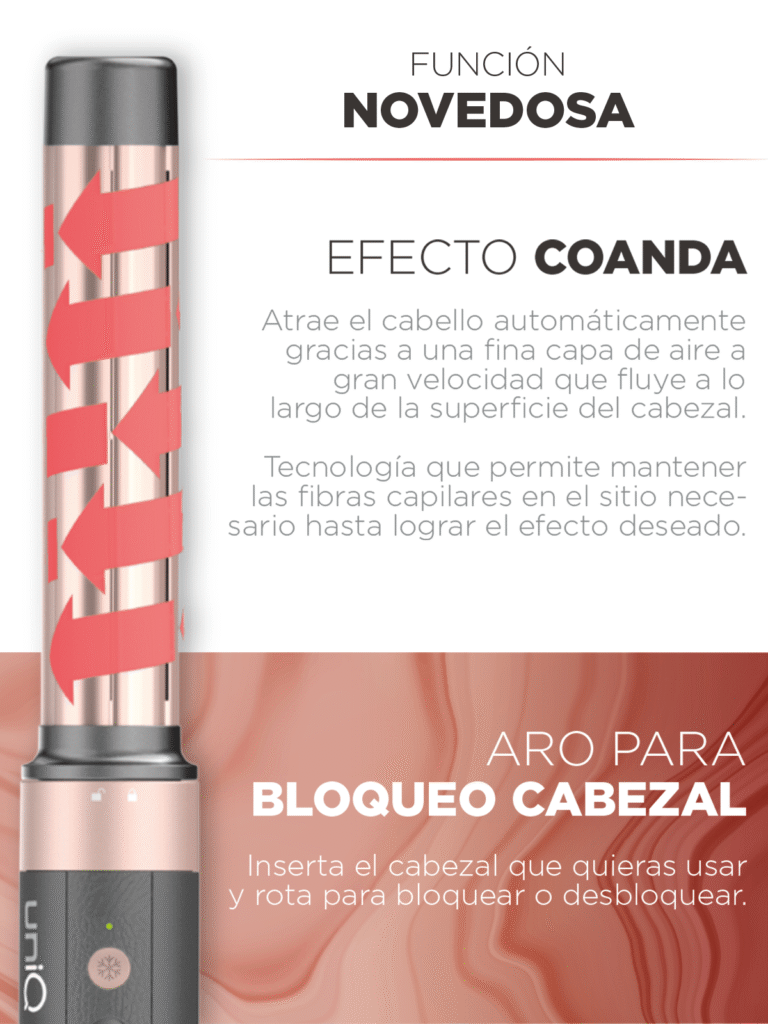 TecnologÃa Efecto Coanda: atrae el cabello automáticamente para lograr peinados definidos y naturales.