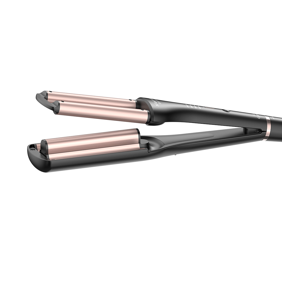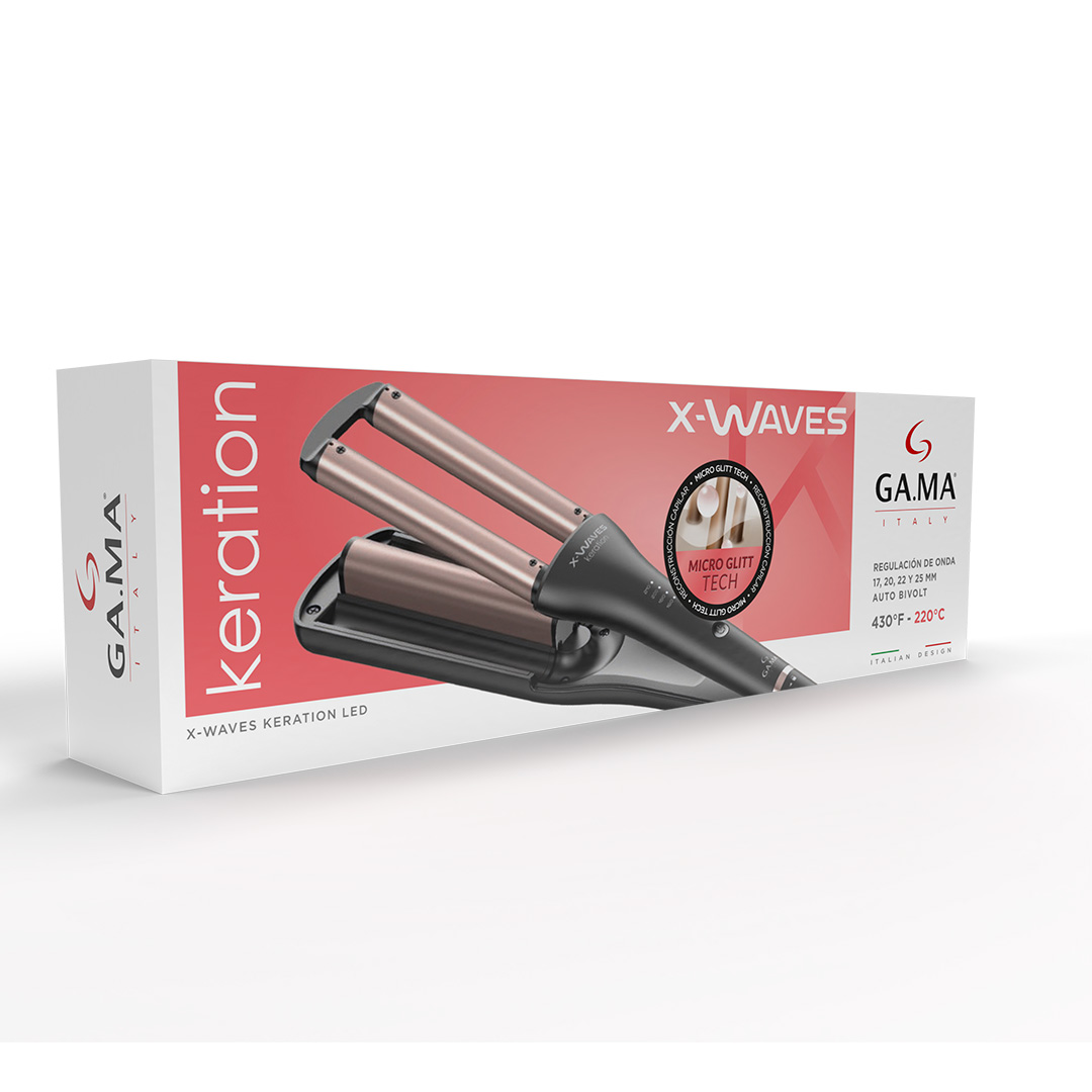 Descubre el Rizador X-Waves Keration de GAMA Italy, diseñado para crear ondas de playa con un acabado profesional desde casa. Su barril innovador permite ondas en distintos tamaños (17, 20, 22 y 25 mm), mientras que la tecnología Micro Glitt protege la queratina natural del cabello, aportando un brillo duradero y un aspecto saludable.